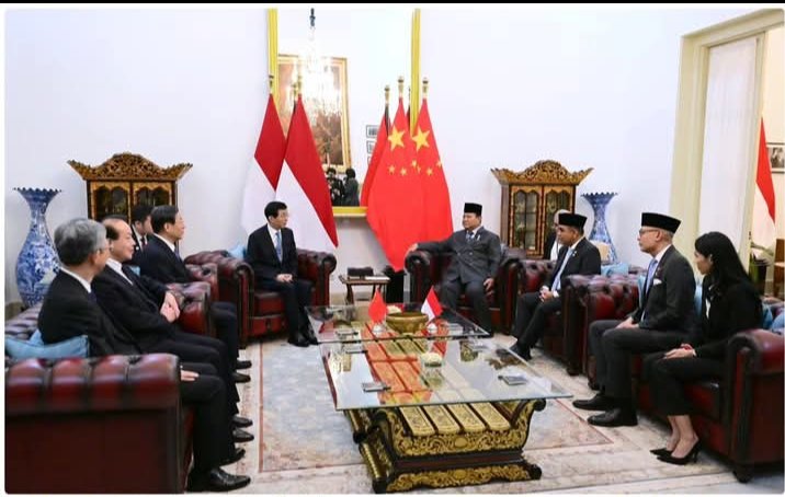 InsightTribun.com|Presiden Republik Indonesia, Prabowo Subianto, menerima kunjungan kehormatan Ketua Majelis Permusyawaratan Rakyat (MPR) Republik Rakyat Tiongkok (RRT), Wang Huning, di Istana Merdeka, Jakarta, Kamis (4/12/2025). Prosesi penyambutan berlangsung khidmat dan penuh kehormatan sejak kendaraan resmi delegasi Tiongkok memasuki gerbang utama istana.