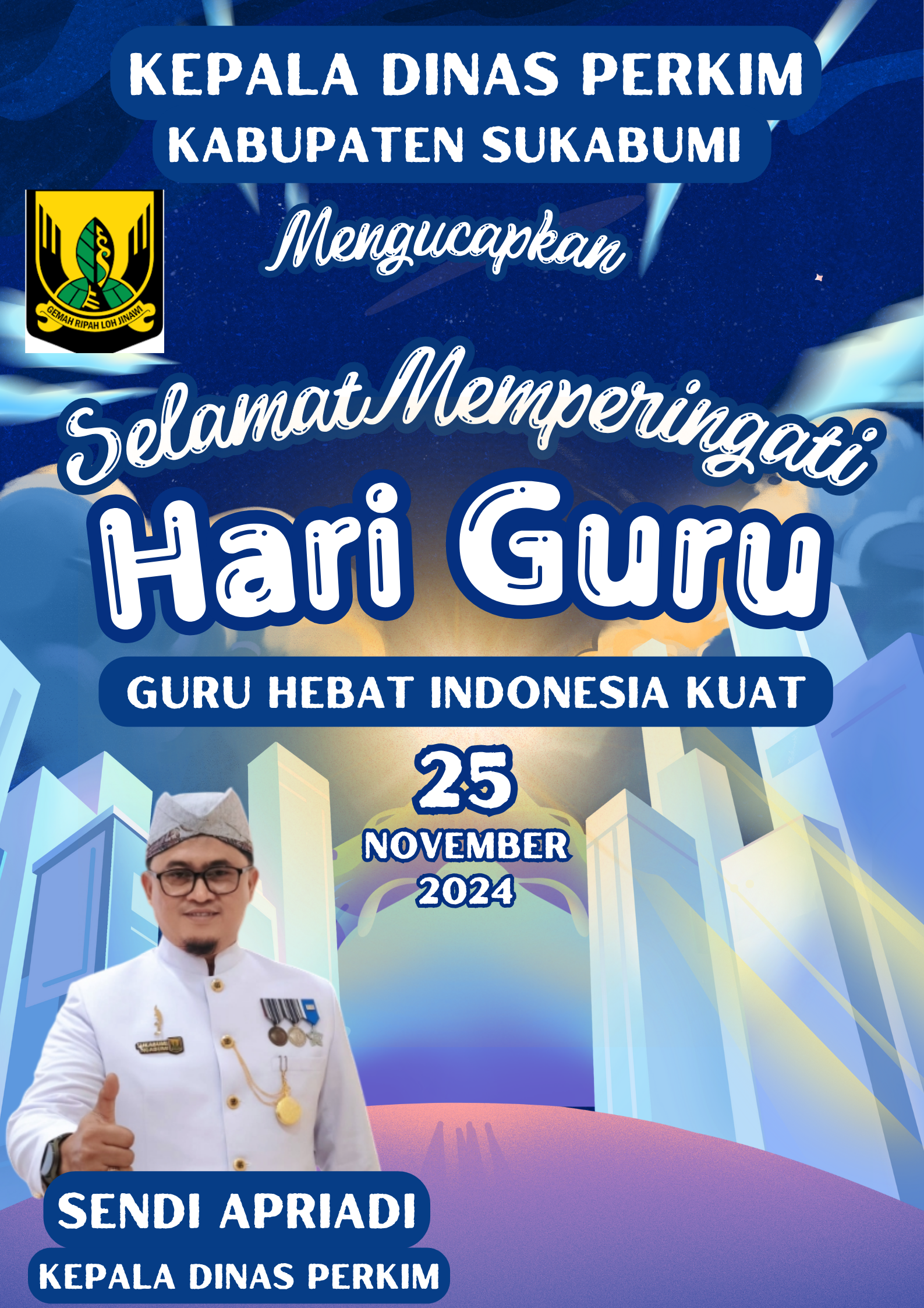 InsightTribun.com|SUKABUMI — Kepala Dinas Perumahan dan Permukiman (Perkim) Kabupaten Sukabumi, Sendi Apriadi, menghadiri acara Hari Bakti Dinas Pekerjaan Umum (PU) ke-80 tingkat Kabupaten Sukabumi yang digelar pada 8 Desember 2025. Peringatan tahun ini mengusung tema “Infrastruktur Berkeadilan, Rakyat Sejahtera, Indonesia Maju, Sukabumi Mubarakah.”